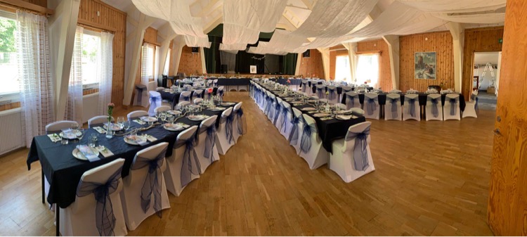 Med stolsöverdrag och dekorativa band kan du ge lokalen en helt annan känsla. Jag har olika modeller och färger att välja mellan. Överdragen tvättas och skickas med när jag levererar de andra blommorna.